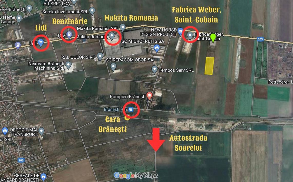 Cel face interesant pe acest teren? Vecinii. Gasim in apropiere Firma Weber Saint Cobain ( cel mai mare producator de geamuri din lume) si Makita Romania ( producator Japonez de scule electrice).