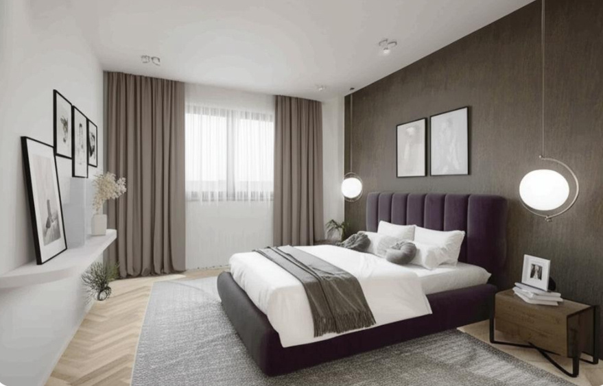 • Dormitor matrimonial cu baie proprie și dressing dedicat